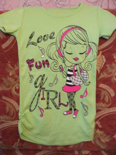 Главная » Фотоальбом » Для девочек » Туники, блузки, футболки » Салатовая туника 35 грн